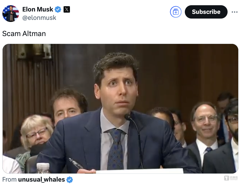 这是奥尔特曼对马斯克的一次巧妙嘲讽,马斯克在2022年以440亿美元(约合3100亿元)收购了推特(Twitter),并更名为X。因此,马斯克立刻在下面跟帖反唇相讥:“骗子。”