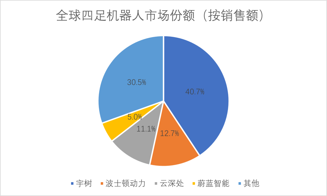 图:全球四足机器人市场份额(按销售额), 资料来源:高工机器人