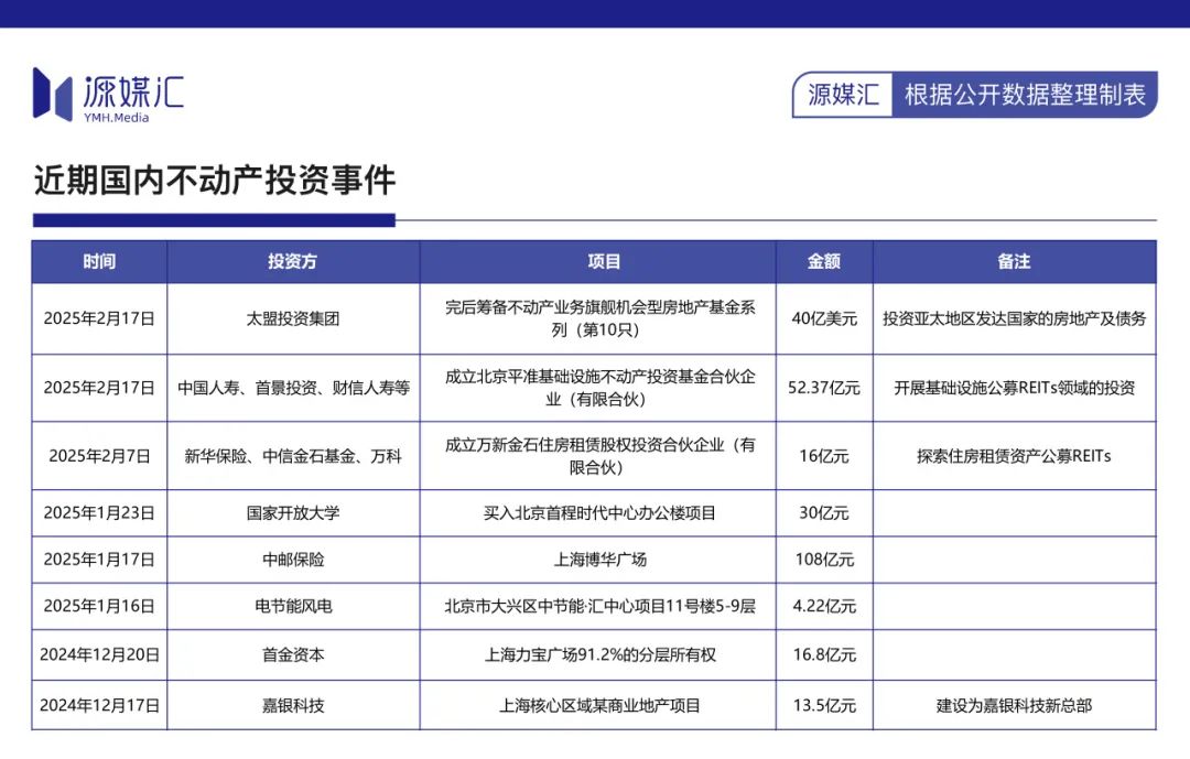 而中邮保险、新华保险近期也在大手笔买入商业地产资产,包括太盟集团、首金资本等资产管理公司同样计划或已经在买楼。
