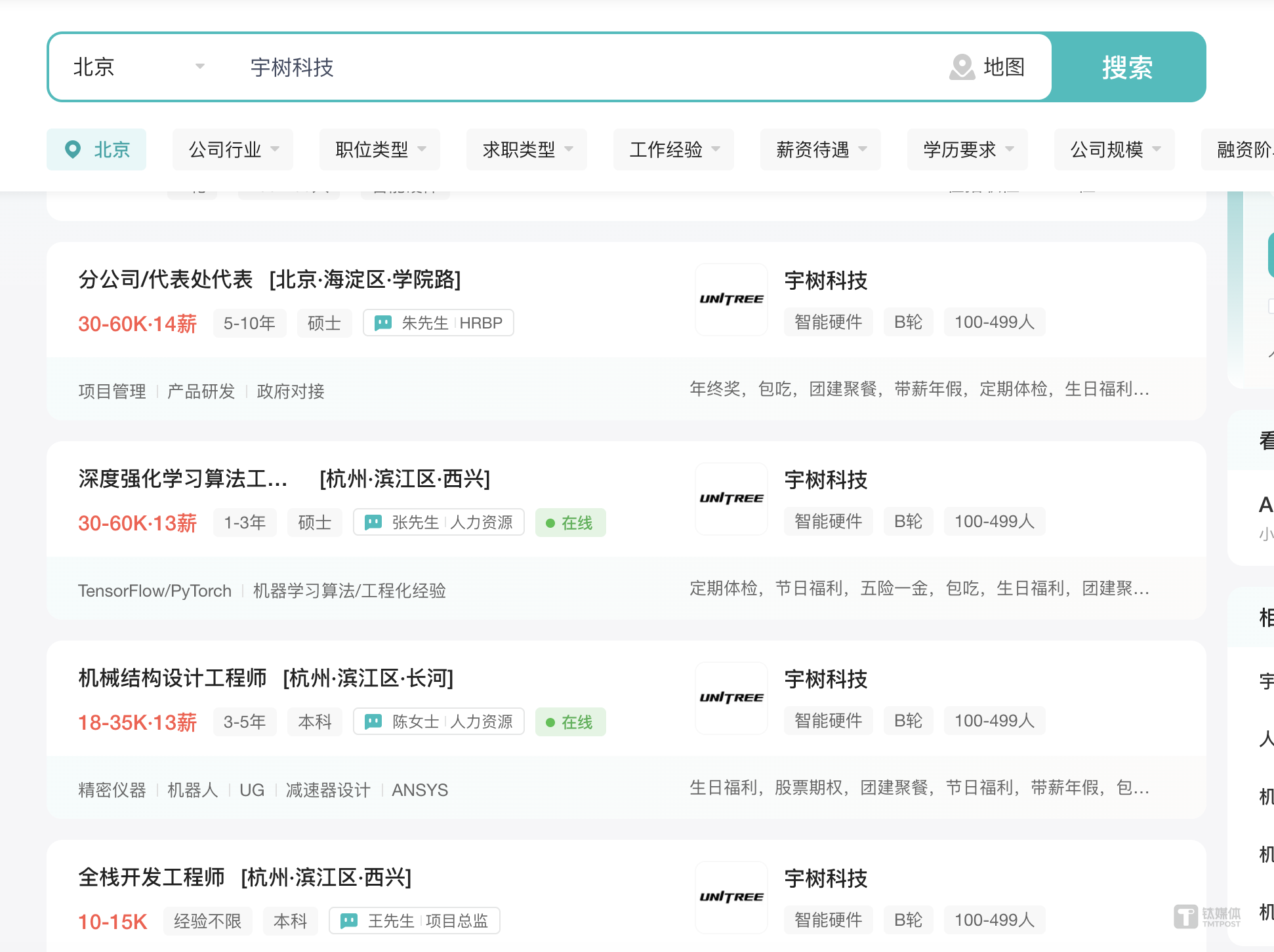 3月7日消息,钛媒体AGI独家获悉,宇树科技近期全新建立了自研“灵巧手”项目,目前已广泛招聘 AI 算法工程师、机电全栈工程师、机械工程师等职位,需要包括嵌入式机电系统软件的开发等要求,部分AI大模型算法工程师职位薪资高达每月6.5万元以上,年薪约合80万元以上。