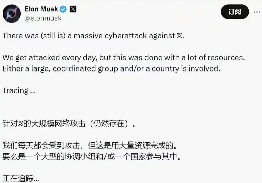 马斯克:遭大规模网络攻击!