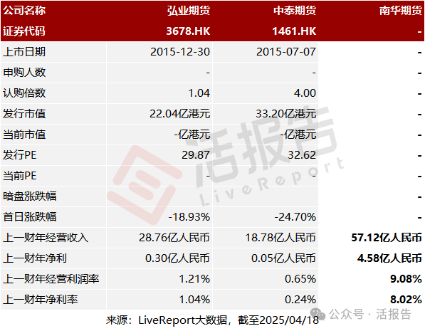南华期货于2025年4月17日首次向港交所递交招股书,拟在香港主板上市,独家保荐人为中信证券。公司于2019年在A股上市,目前市值逾75亿人民币。