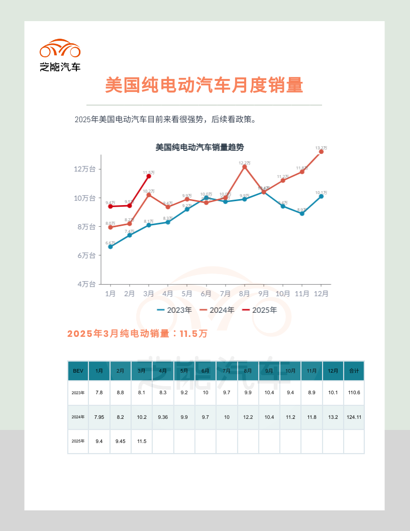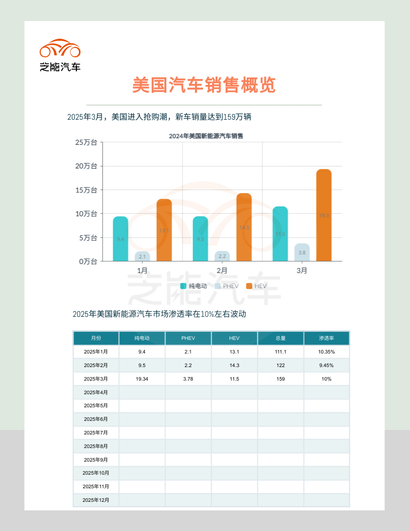 2025年3月,美国电动汽车市场在HEV、PHEV和BEV的共同推动下保持强劲增长,PEV市场份额接近10%,当然后续怎么样我们再持续观察。