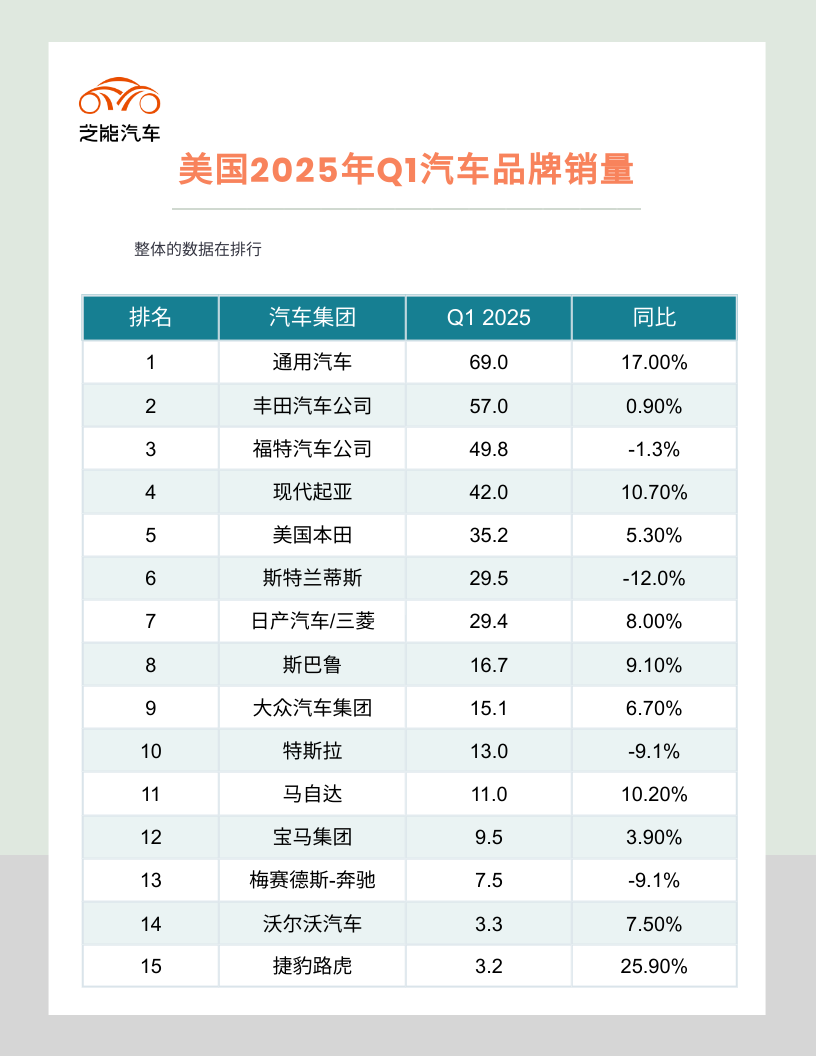 ◎ 通用汽车在第一季度整体销量增长17%,达到69万辆。