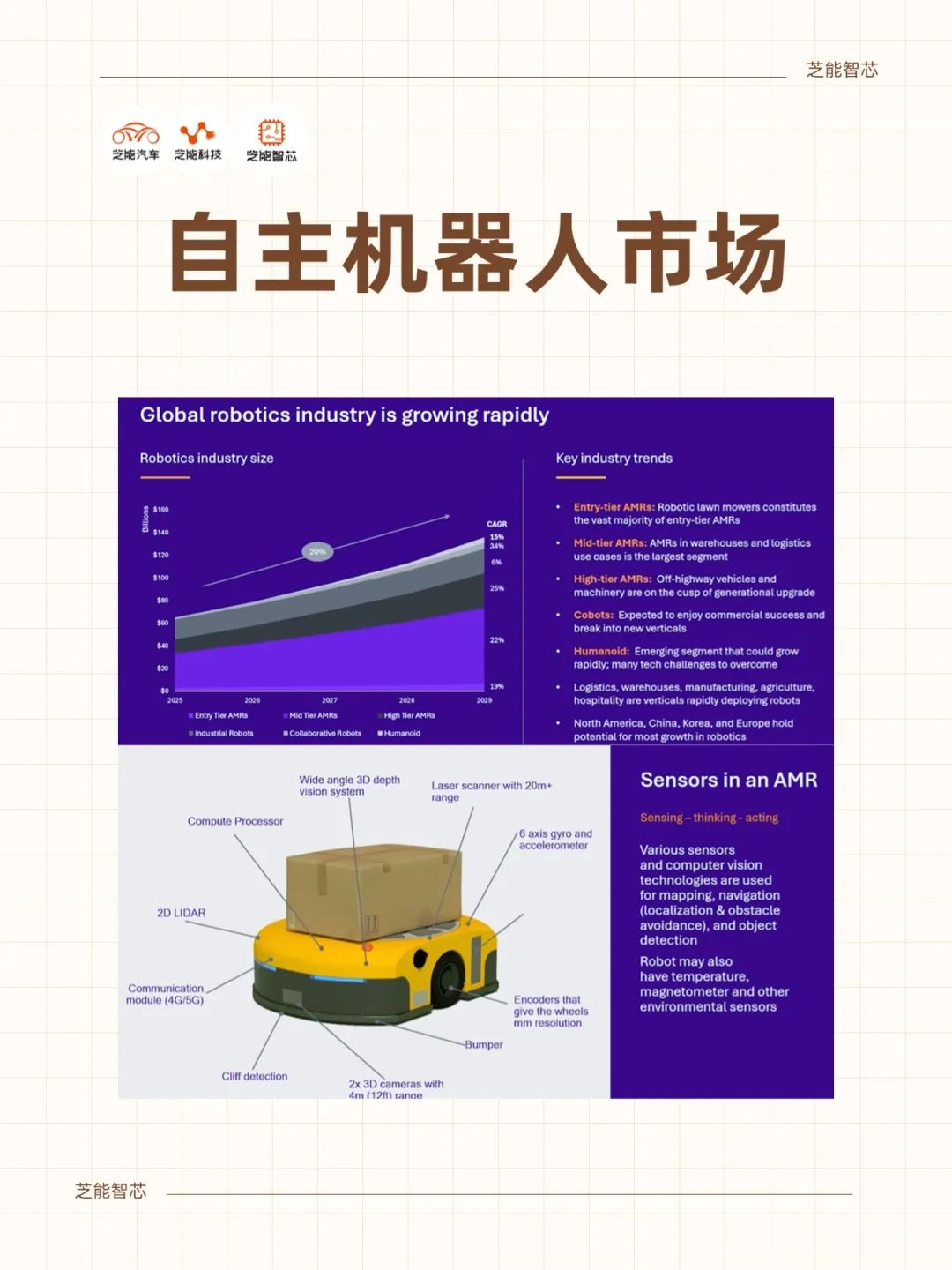 AMR集成了多模态传感器、SLAM定位、AI路径规划及大语言模型(LLMs)等技术,通过高通等供应商的芯片与生态支持,实现高性能、低功耗的智能决策。