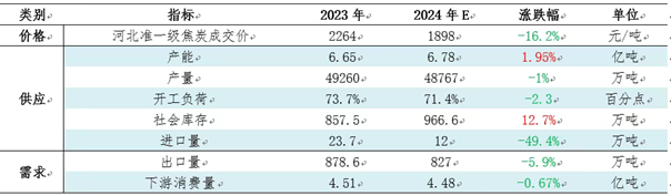 2024年是煤焦钢市场弱势运行的一年,由于重要终端地产与基建的弱势,弱势情绪从终端传导到钢材,再到原料端的双焦,黑色系缺乏有效的价格支撑,焦炭供需格局偏宽松,价格跌多涨少。