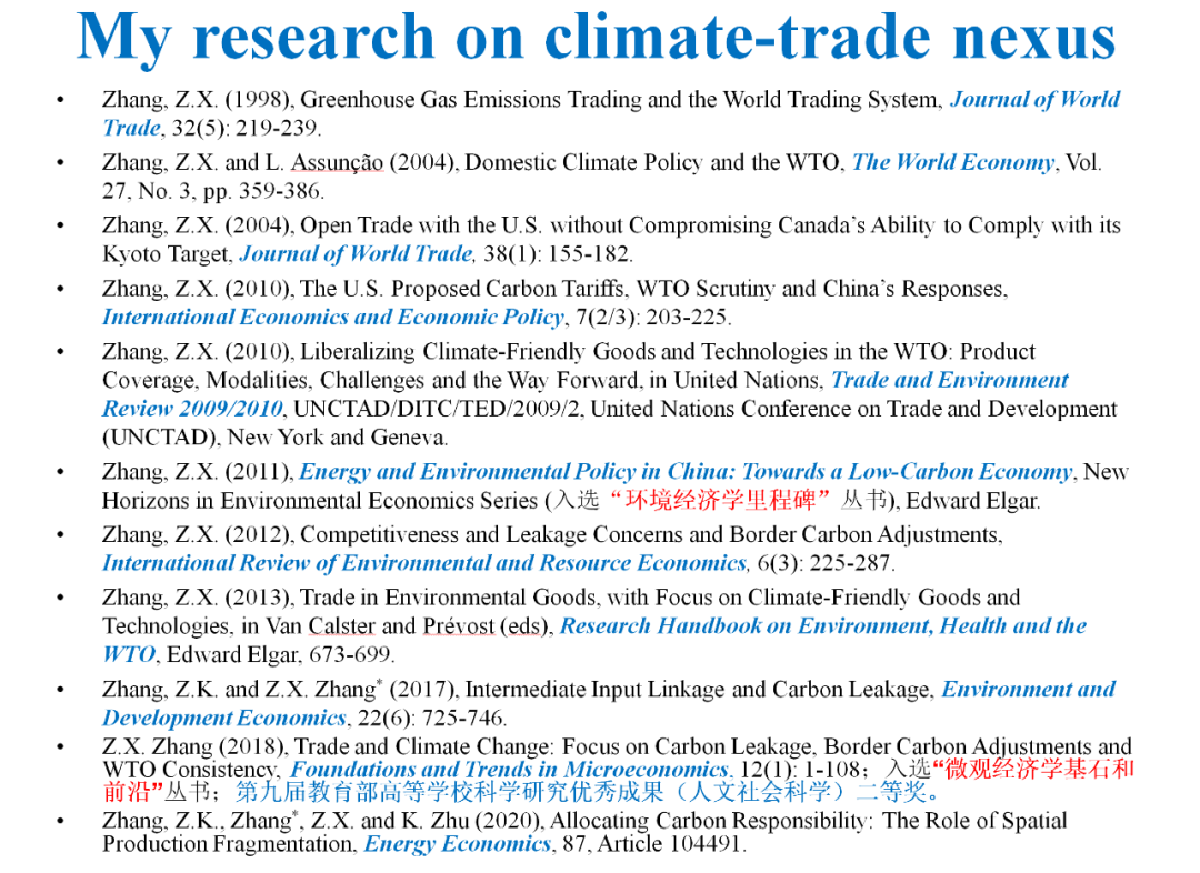 气候变化经济学与政策是本人的研究领域之一。1990年在荷兰能源研究中心政策研究部任研究员时独立撰写了领域第一本研究报告Evolution of Future Energy Demands and CO2Emissions up to the Year 2030 in China (ECN-I--91-038),说起来在这一领域从事研究工作已35年了。