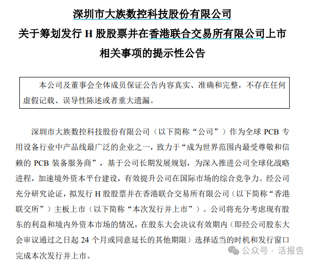 4月20日晚,PCB专用设备龙头大族数控(301200.SZ)发布公告称,为深入推进公司全球化战略进程,提升国际市场竞争力,公司拟发行H 股股票并在港交所主板上市。