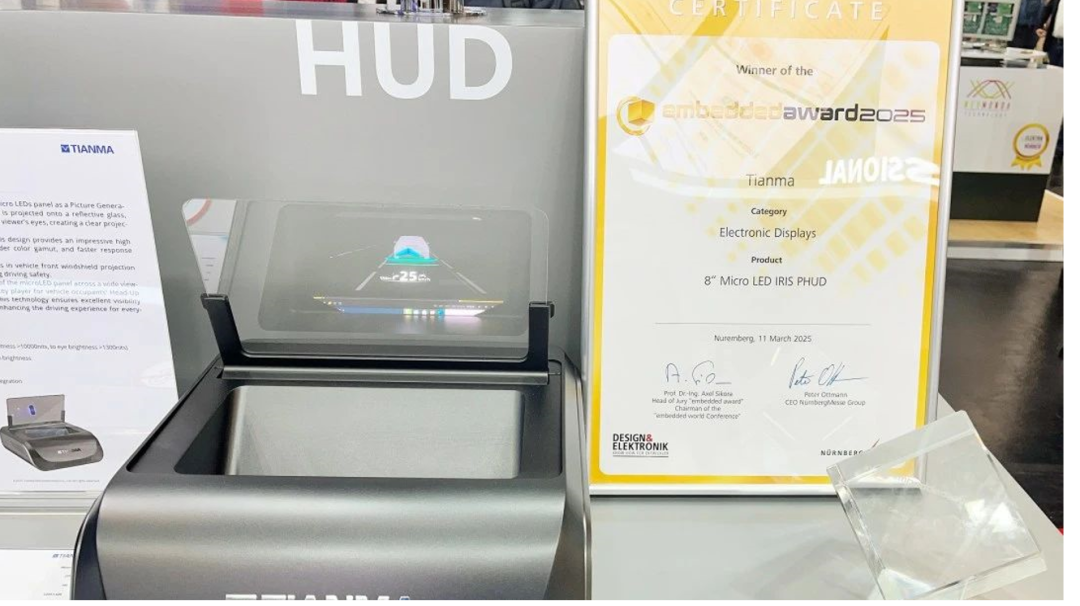 公司推出的8英寸Micro LED IRIS PHUD 是业界首款具有最高PPI的Micro-LED全景式抬头显示,获德国EW 2025展“Electronic Displays”奖