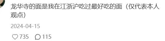 龙华寺的素面标价15元一碗,在大锅素斋中已经算是“高价”,但面和浇头都可以免费续,收你30块还把免费续面条做成“施舍”的马永记们只能自行惭秽。