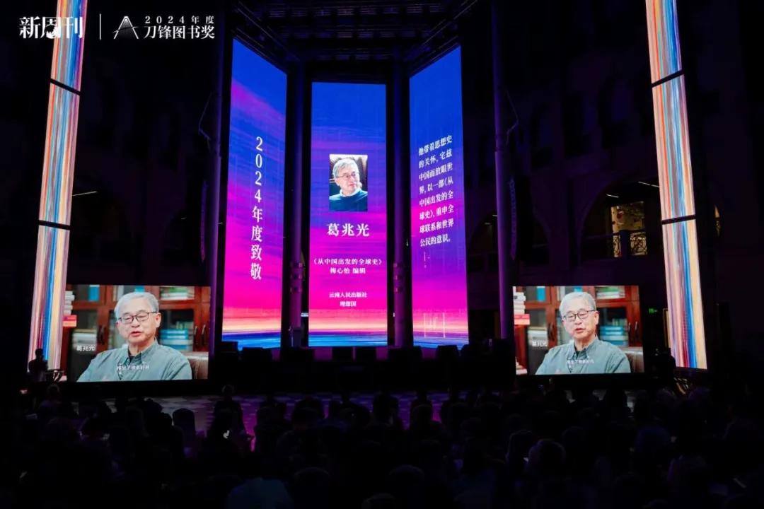 “年度致敬”获得者葛兆光教授身为学界前辈,积极拥抱新媒介,试图通过更丰富的内容形态帮助人们打开视野。他主编的《从中国出发的全球史》,最早源于一档播客节目,之后他邀请20多位中青年学者共同撰稿,其成果就是三卷本的厚重之作。主要撰稿者之一段志强代为发表感言:“在这个到处脱钩的时代,有这么多人致力于讲述人类交融和文明互动的故事,这表达一种清晰的态度,那就是对于共通、共享、理解和包容的信心与坚持。”