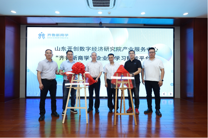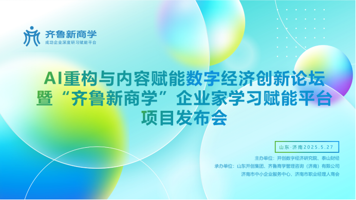 5月27日下午,由开创数字经济研究院与泰山财经联合主办的AI重构与内容赋能数字经济创新论坛暨“齐鲁新商学”企业家学习赋能平台项目发布活动在济南成功举办。活动以“助力数字新经济,引领鲁商新风尚”为主题,本次活动上,开创数字经济研究院数字经济产业服务中心与“齐鲁新商学”企业家学习赋能平台正式揭牌。