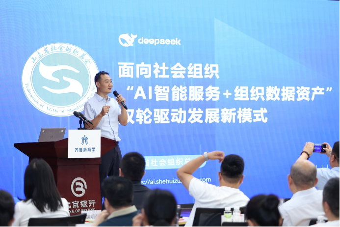 活动以论坛环节压轴。开创集团副总裁、开创云首席服务官曲维维,磐石融媒总经理、山东省供应链协会新酒饮与食品分会会长张平,开创数字经济研究院副院长、齐鲁新商学联合发起人、智美睿教育传媒集团董事长杨传忠,山东省社会组织AI应用服务平台产品总监明宗钊围绕“AI重构与内容赋能”这一主题,为参会企业家和社会组织带来了精彩的干货分享。