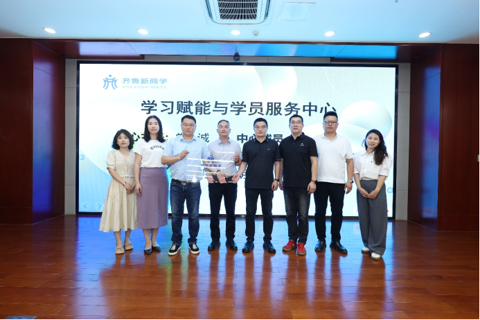 接下来,王安忠、冯立明、孔祥辉,以及“齐鲁新商学”发起人常诚、杨传忠共同为研究院数字经济产业服务中心和“齐鲁新商学”企业家学习赋能平台进行了揭牌。