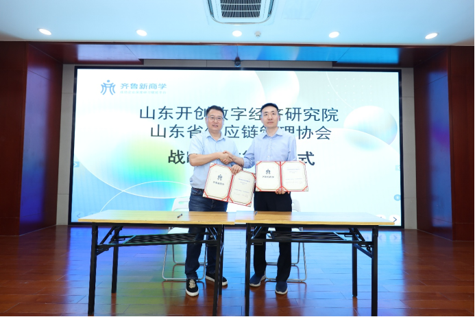 在战略签约环节,山东开创数字经济研究院与山东省供应链管理协会进行战略签约;“齐鲁新商学”平台分别与山东省中小企业服务联合会、济南市中小企业公共服务中心、北京银行济南分行进行了战略签约。