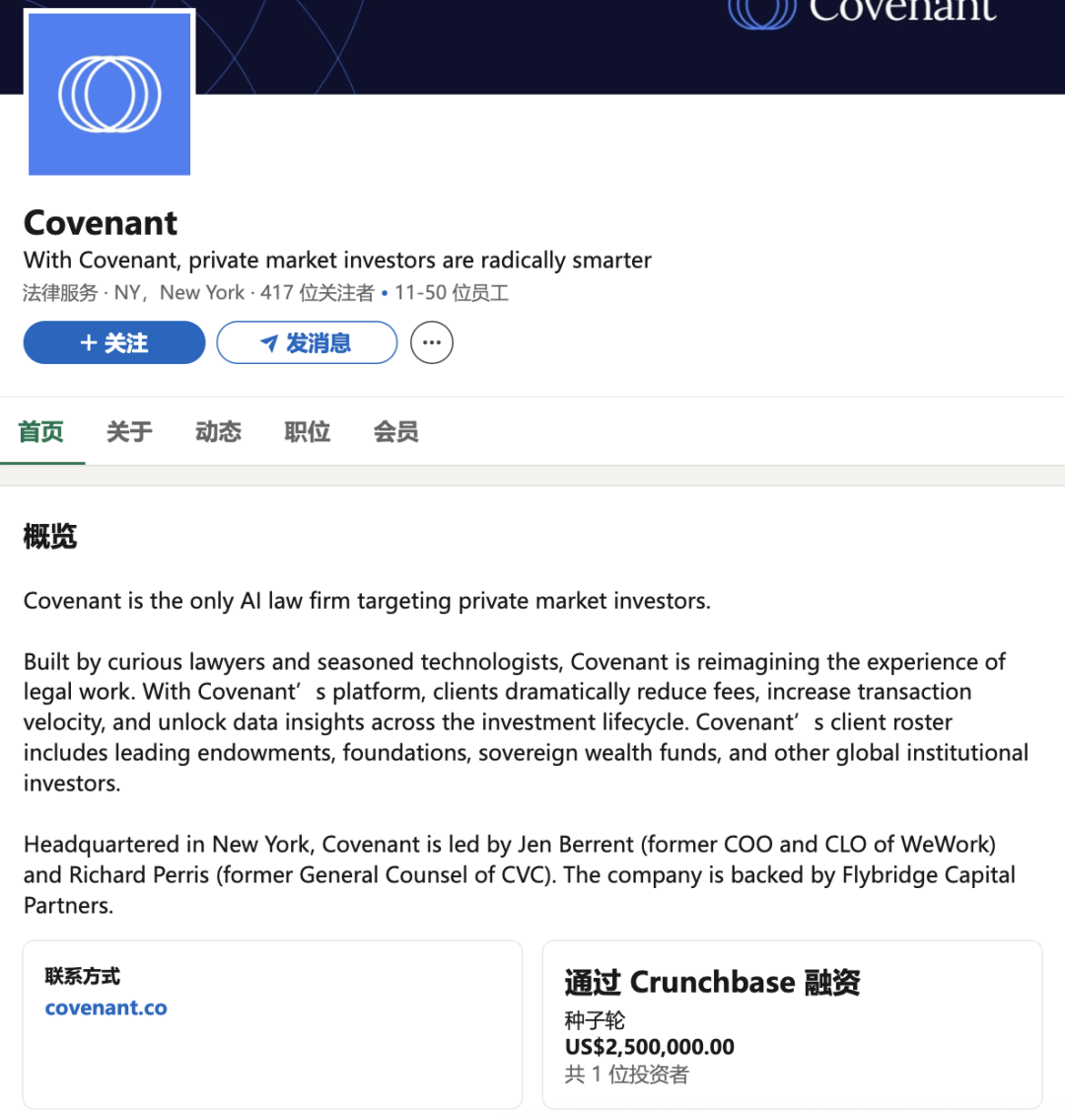 Covenant并没有试图一杆子打破所有赛道,而是专注于私募基金的合同审查。
