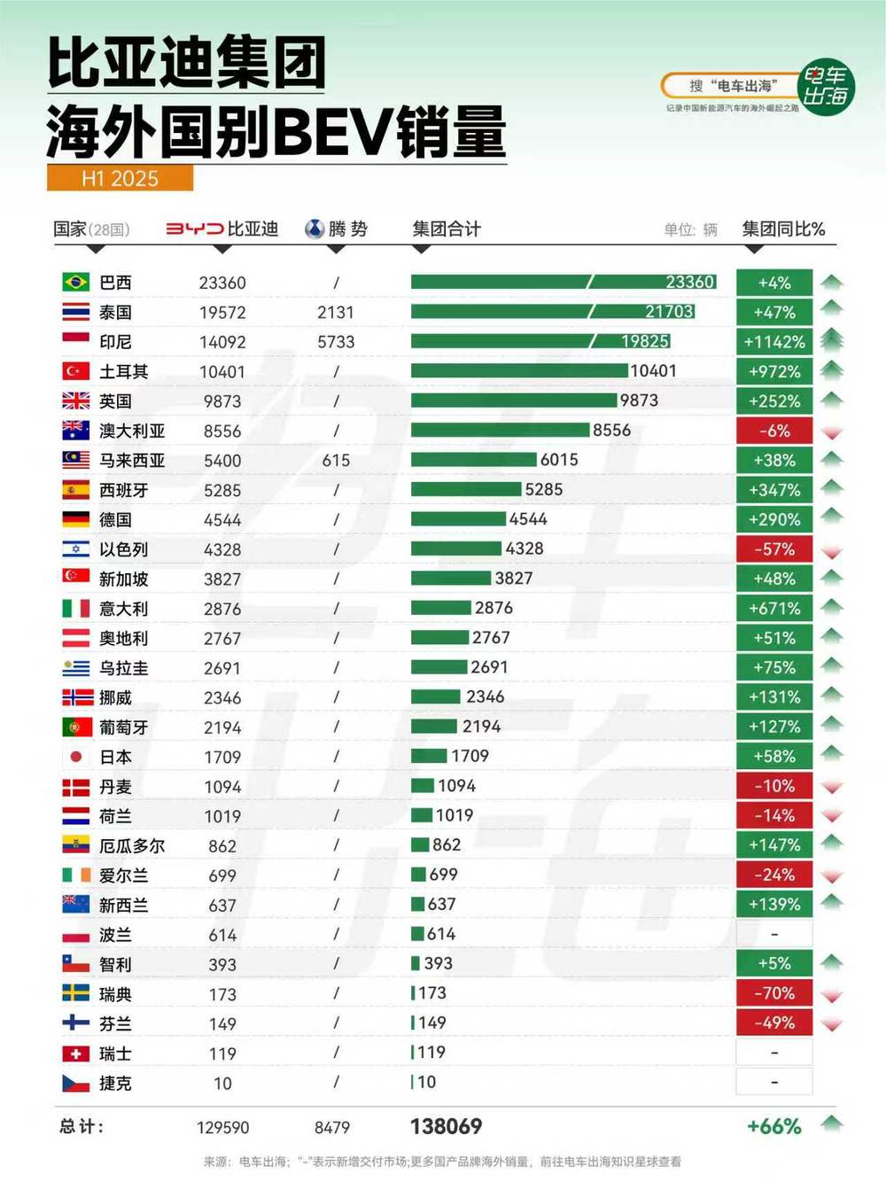 特别鸣谢:“电车出海”提供的比亚迪海外国别BEV销量