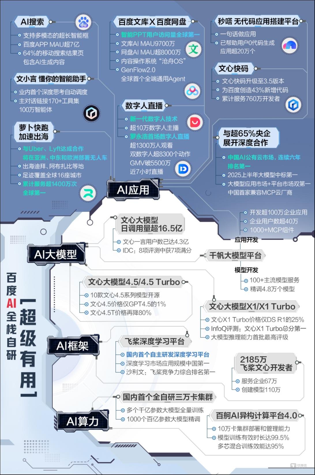 底层算力、基础模型、开发平台到上层行业应用的全链条技术能力,百度覆盖了AI产业化的完整闭环。这一战略不仅体现在技术布局上,更通过产业落地验证了其综合优势。