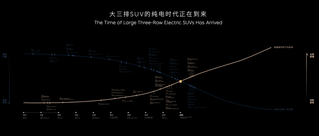 更重要的是用户心理的变化。增程车型在过去几年完成了用户教育,让家庭用户逐渐习惯用电、依赖电网,反过来加速了纯电的接受度。当用户意识到“续航焦虑更多是心理问题”时,纯电大三排SUV便拥有了真正爆发的土壤。