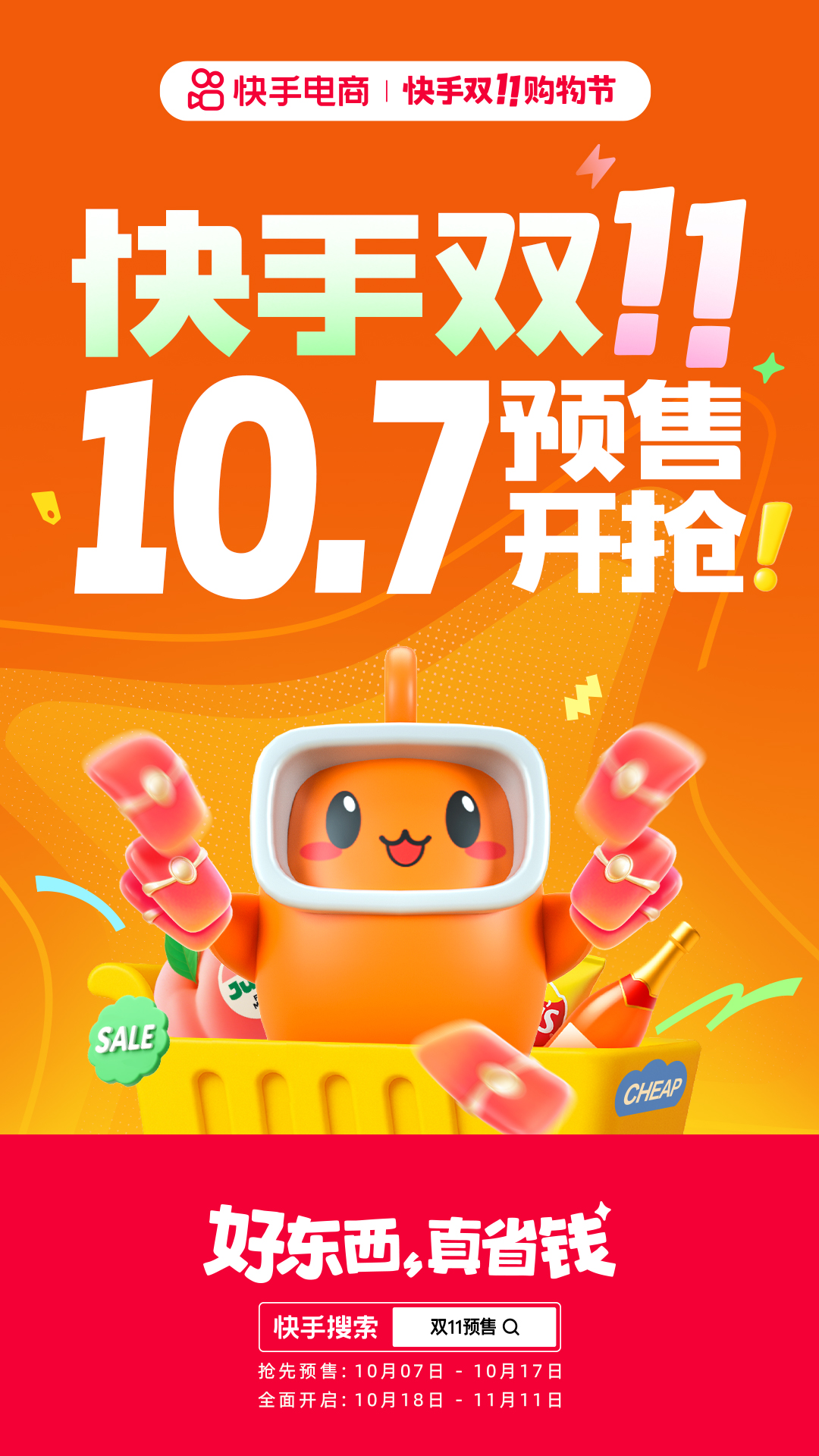 一年一度的双11大促已经打响,快手电商将整合全平台资源和能力,全方位帮助商家达人降本增效,备战大促,在这场年度大促中实现突破新增长。