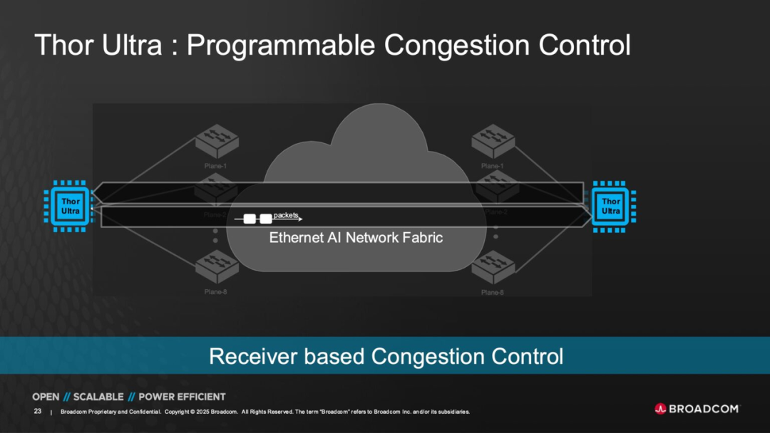 在拥塞管理方面,Thor Ultra具备可编程拥塞控制管道(Programmable Congestion Control Pipeline),支持基于接收方和发送方的双向算法优化。