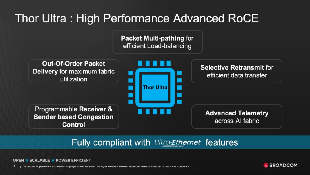 Broadcom Thor Ultra 800GbE NIC的设计完全围绕AI数据中心的极致性能需求展开。
