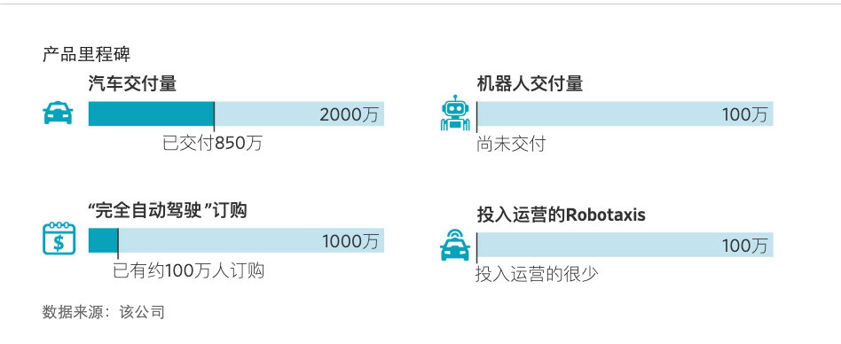 这些运营里程碑中有四个与特斯拉的现有和新产品挂钩。