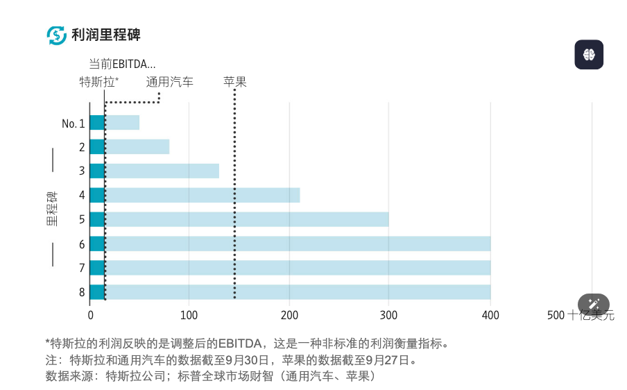 另外八个运营里程碑则与基于特斯拉利息、税项、折旧、摊销前收益(Ebitda)的一项调整后利润指标挂钩。