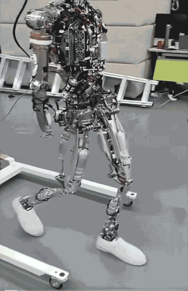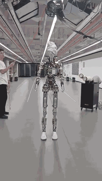 虽然展示的确很短暂,但短短十数米的行进,却展示出了相当高的类人能力:柔和的肩颈舒展,自然的胯部摆动,流畅的转身衔接。让部分人在看到官方视频之后,开始集中“质疑”(其中大部分人都并非怀疑,只是凑热闹刷感叹思):“这肯定是真人套壳,里面一定有人!”
