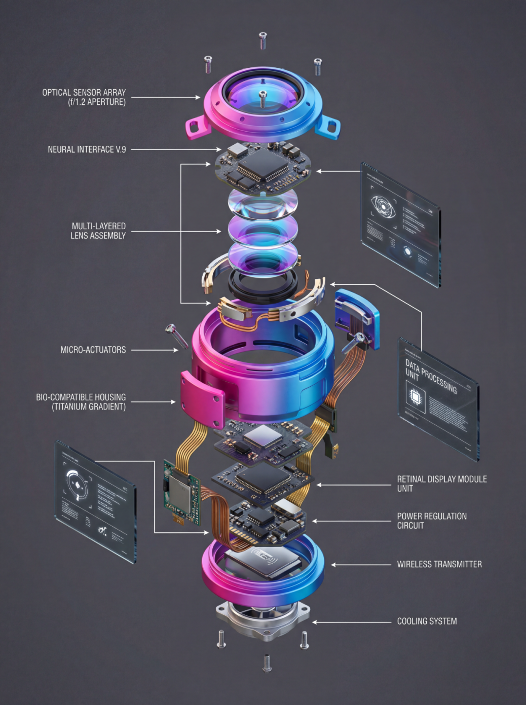 还有一个非常惊艳的,来自好朋友@雪佬的一个赛博义眼拆解图。
