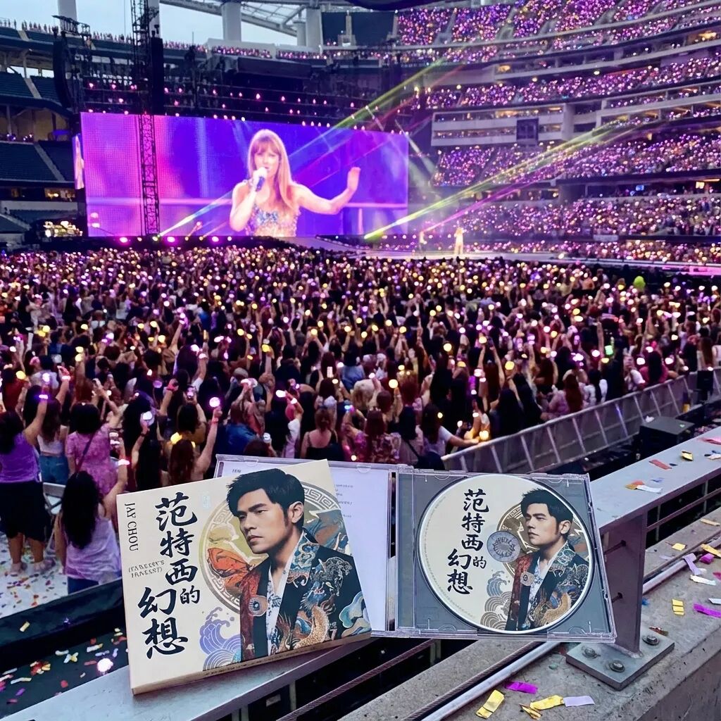将图中的产品放置在泰勒斯威夫特的演唱会当中。