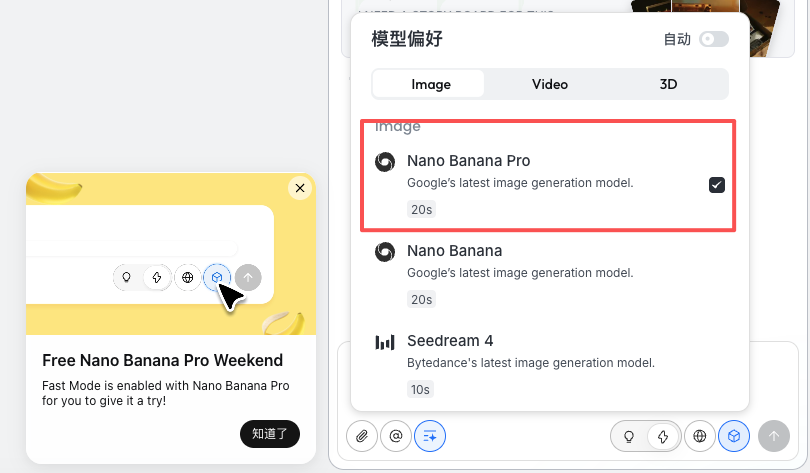 目前在Gemini上,选择思考,然后调用banana,就是Nano Banana Pro模型了。