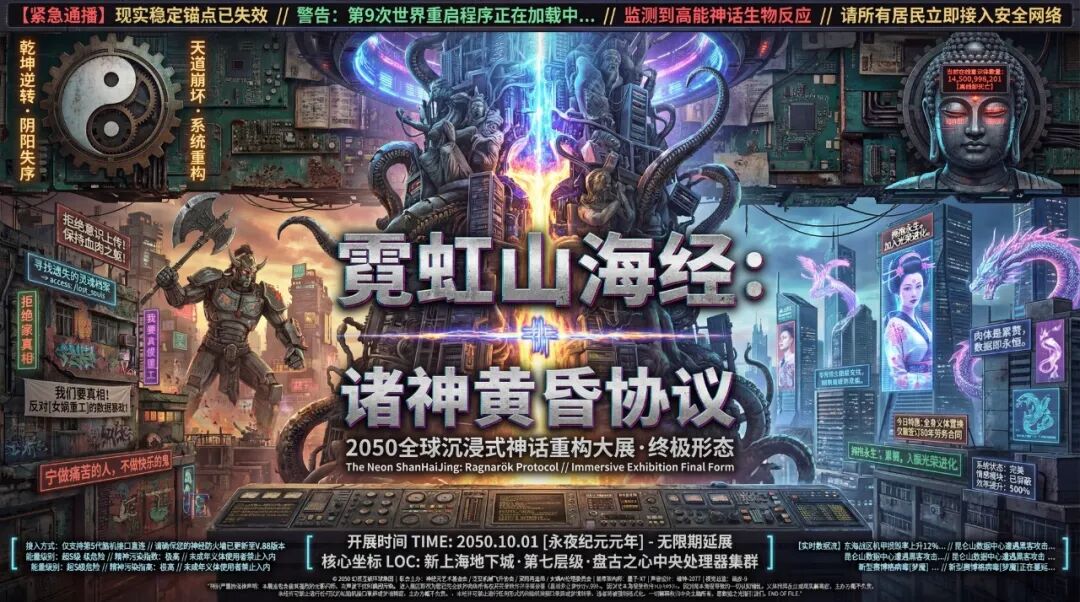 而做一个中文的超多文字的赛博朋克主视觉,也是稳的离谱。