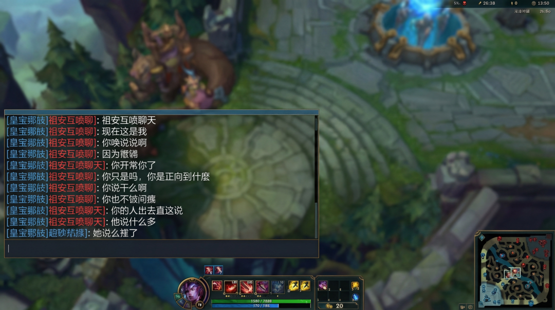 英雄联盟游戏中的界面,祖安互喷聊天。