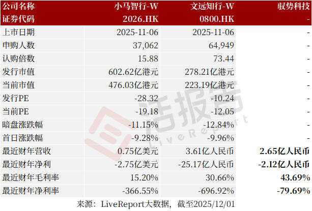 同行业IPO可比公司:小马智行、文远知行