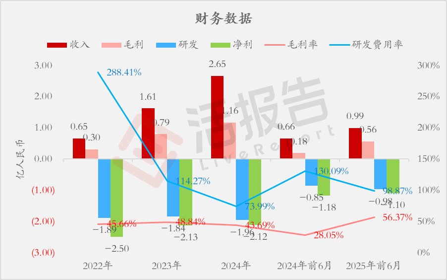 收入分别约为人民币0.65亿、1.61亿、2.65亿、0.66亿、0.99亿,2025年前6月同比+50.28%;
