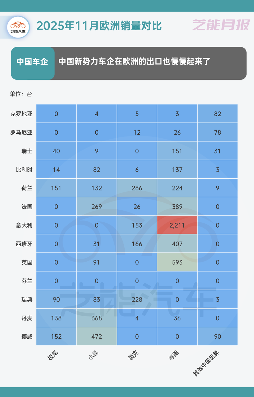 目前欧洲不少国家的汽车销量出来了,中国车企在不少国家的数据都不错。