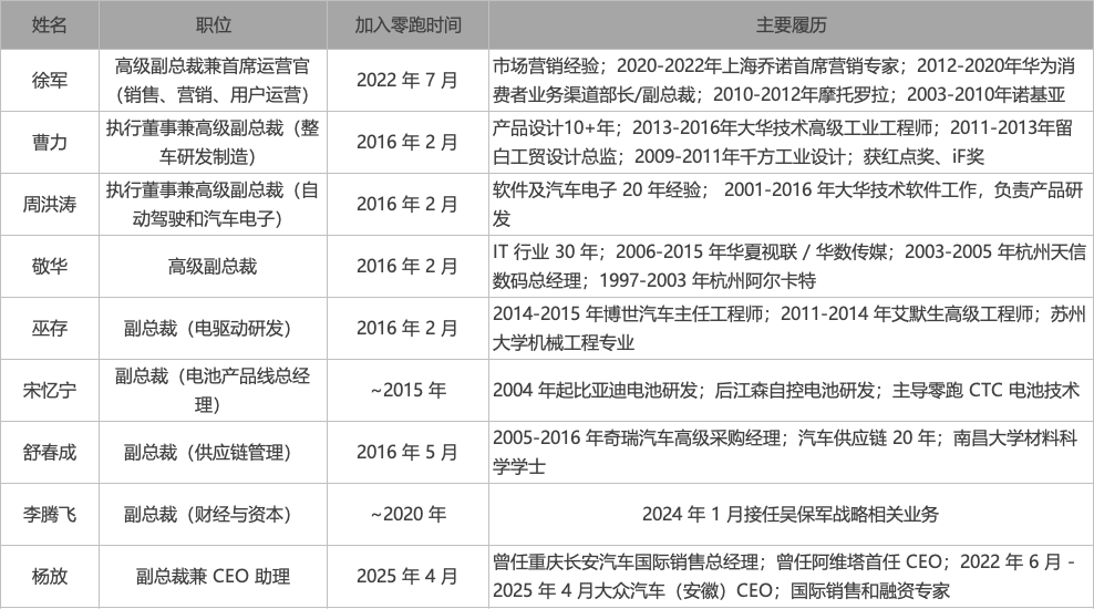 朱江明:我们整个创业团队原来基本上都跟车没有关联的(虎嗅注:创始核心成员基本都是朱江明从大华股份里带出来的),我们高管团队10来个人,只有三个人在零跑之前有汽车背景(分别是财务、运营、供应链负责人),剩下的——无论是研发、还是销售负责人,都不是搞汽车的。