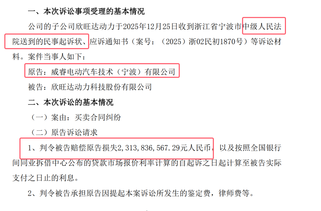1 、欣旺达公告并非说明详细的细节,目前只知道是吉利旗下威睿动力向欣旺达动力索赔超23亿元。公开数据显示,欣旺达2024 年到截止今年 Q3 的扣非归母利润为 26.20 亿。加入真的输了官司,相当于白干差不多 2 年。