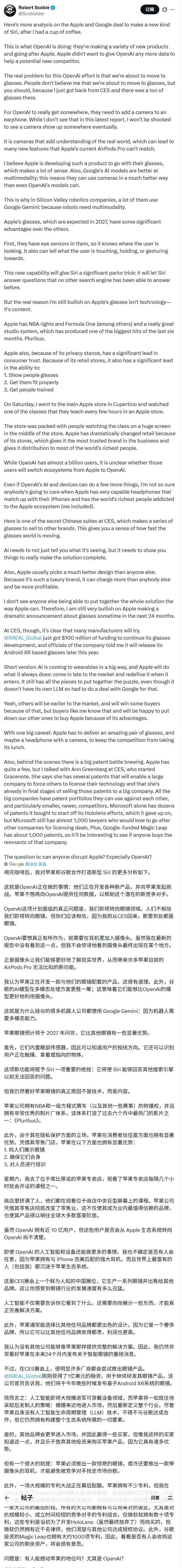 上述网友的分析进一步指出:苹果依然拥有内容(如NBA转播权)、零售店和用户信任等巨大优势。即使其他公司先推出眼镜,苹果也有信心凭借这种生态整合能力,后来居上,重新定义行业。