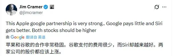 CNBC名嘴吉姆·克莱默(Jim Cramer)认为,这是一种极其稳固的双赢:谷歌付出的边际成本极低,却换来了Siri体验的质变,直接拉升了两家公司的股价预期。