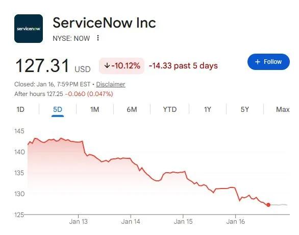 个股跌幅同样惨烈:上周,ServiceNow Inc.股价跌超10%至多年低位;Intuit Inc.跌幅近15%,创下2022年以来最大单周跌幅;Adobe Inc.跌约10%,Salesforce Inc.重挫逾11%。