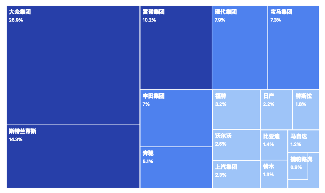 ◎ Stellantis(189 万辆)表现不好,同比 -3.9%,