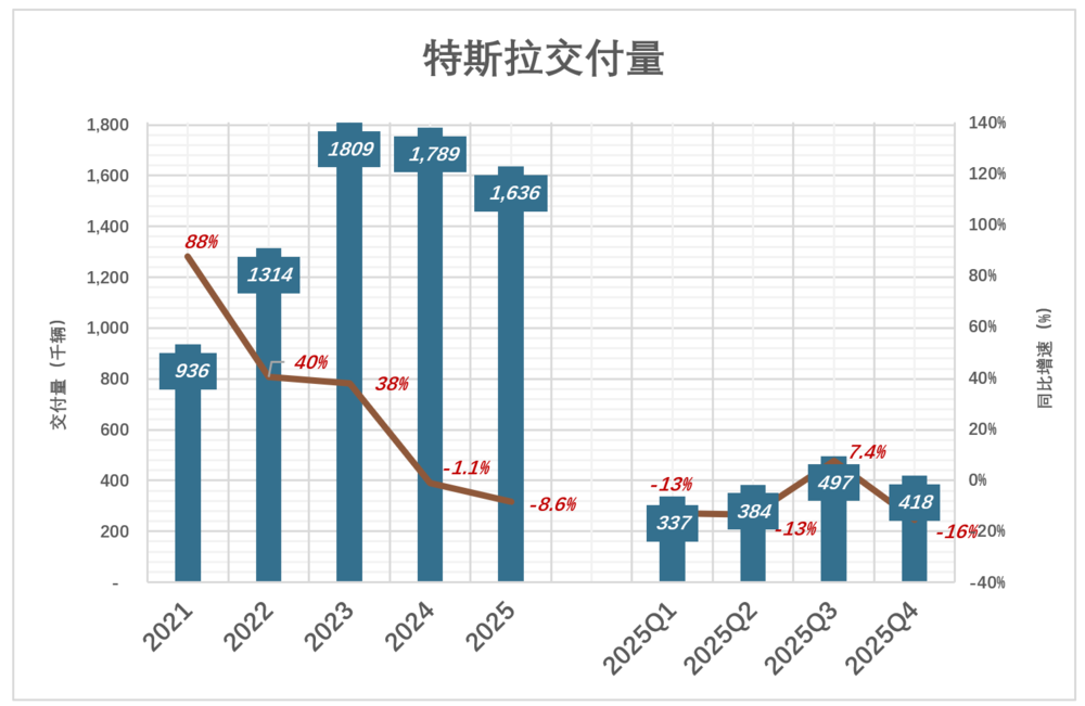 2025年Q4,交付41.8万辆、同比下降15.6%;