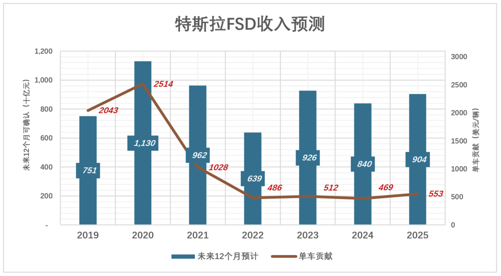 2025年交付163万辆,未来12个月(即2026年)可确认FSD收入为9.04亿美元;每卖一辆车,次年可确认553美元FSD收入;
