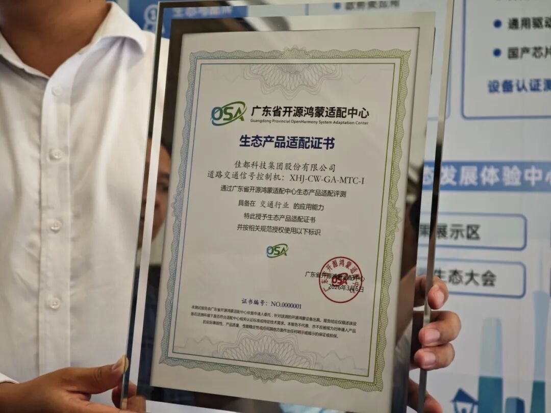 值得一提的是,黄埔区内企业佳都科技基于“交通佳鸿”操作系统的交通信号机产品,在3月20日获得省适配中心颁发的首张开源鸿蒙生态产品适配认证证书。