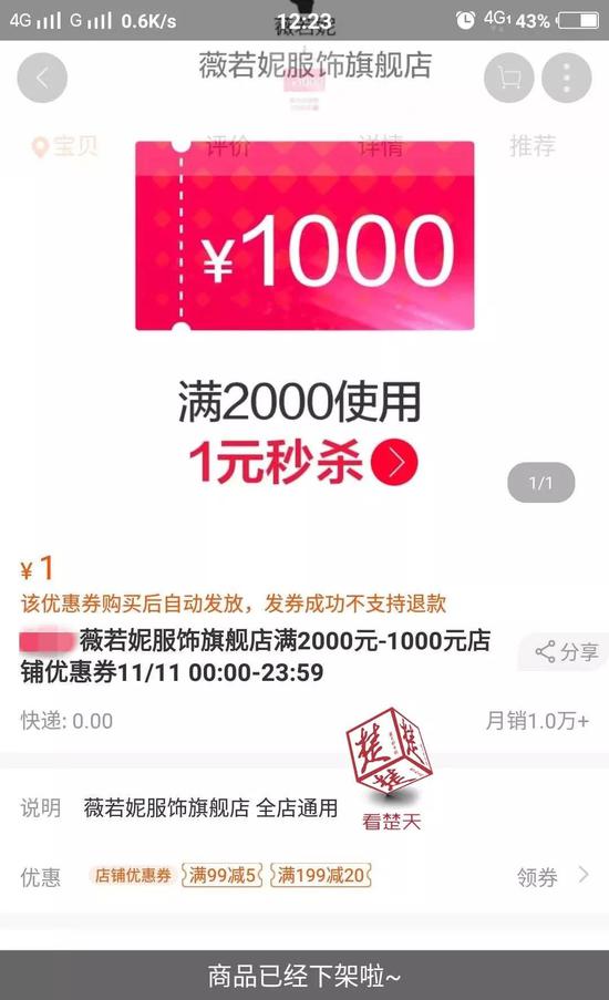 薇若妮服饰旗舰店的注册公司是武汉诱果电子商务有限公司。记者联系上该公司法人代表张先生。张先生介绍,双11当天,他们参加了电商平台的官方活动,后来又参加了平台新增的限时五折和满2000减1000的活动。