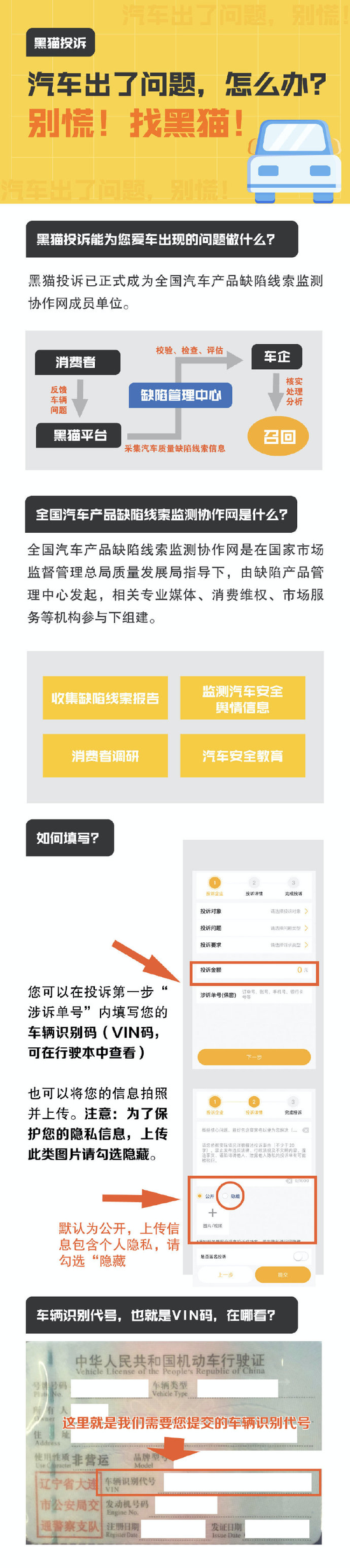 截至2021年4月1日,黑猫投诉共收到有效投诉403万余单,入驻商家18000余家,自加入协作网以来,持续收集汽车质量问题相关线索上传协作网,线索内容共涉及32家车企。未来,新浪黑猫投诉也会继续配合缺陷产品管理中心工作,与协作网各成员单位共同持续强化缺陷线索收集分析能力,优化完善信息处理机制,积极开展面向消费者的回访、调研以及汽车安全科普活动,更好地为汽车召回监管和消费者权益保护提供支持和服务。