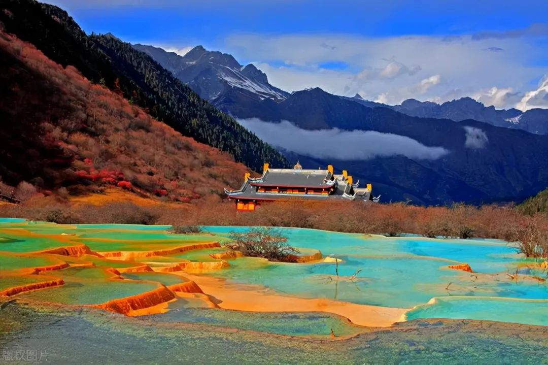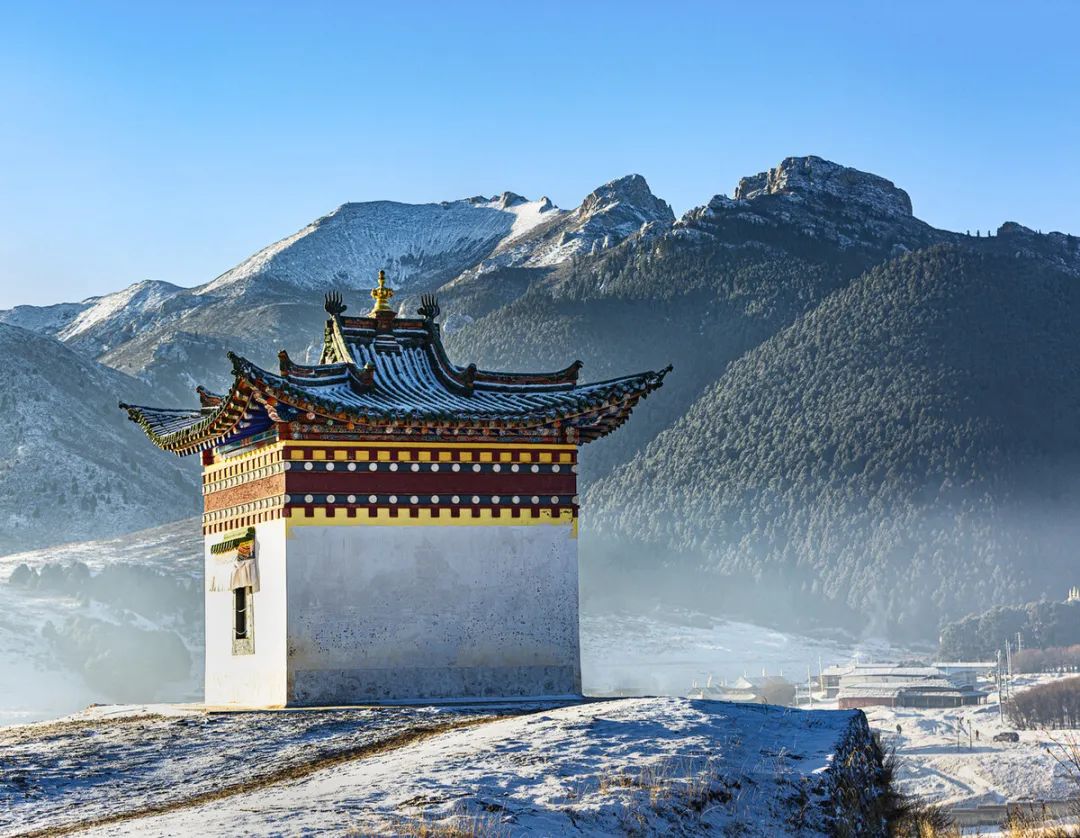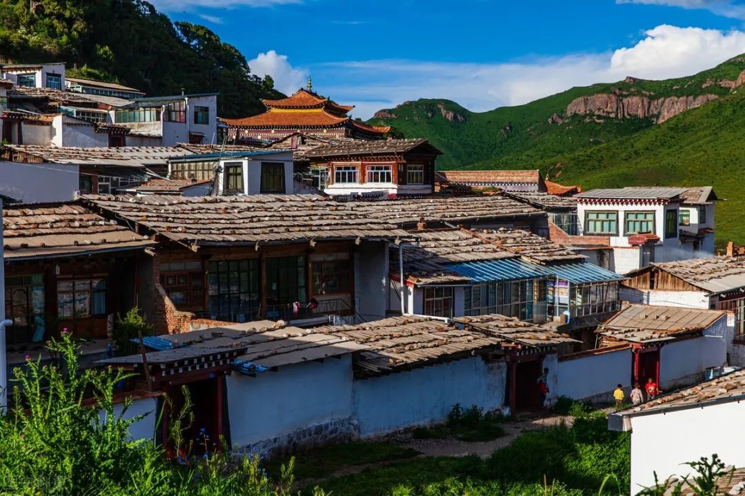 成片的寺庙与壮丽的峡谷风光相互映衬