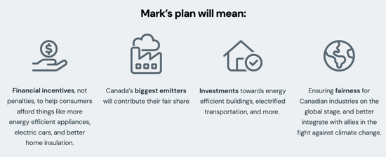 卡尼从宣布参选开始就刻意与特鲁多政府保持距离,当时就已经提出如若当选就要取消碳税,他给出的理由是:消费碳税已经失效,它让加拿大社会变得过于分裂。